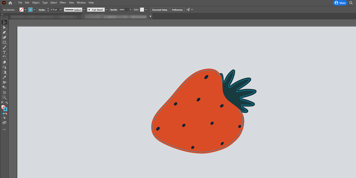위의 상태로 반컷팅을 해서 커스텀 스티커를 제작한 뒤에 스티커를 후지에서 분리하면 왼쪽은 딸기 모양만 떨어지게 되고 오른쪽은 테두리에 흰색이 포함된 모양으로 떨어지게 됩니다. 단순해 보이지만 이 두 가지 선택중 왼쪽 형태의 커스텀 스티커에서 많이 인쇄 미스 혹은 커팅 실수가 발생합니다.